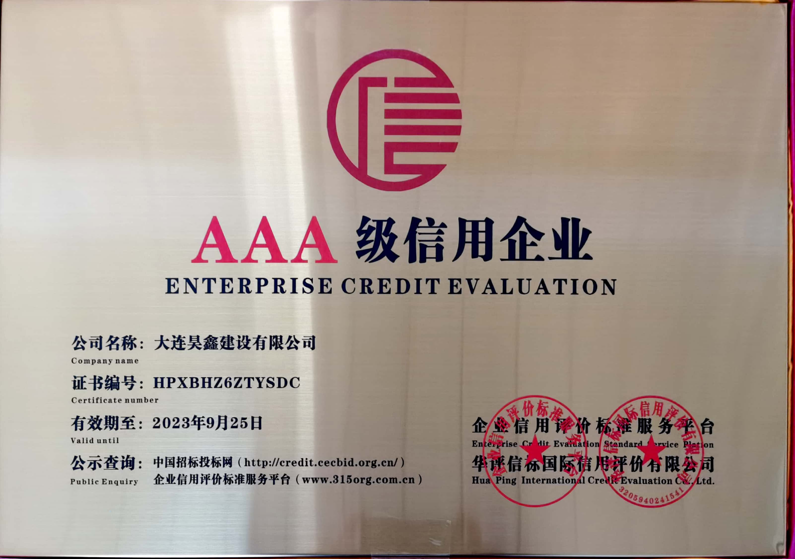 AAA企業(yè)信用等級(jí)
